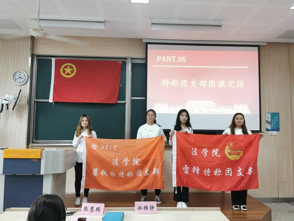 在本次活动中,法学1801“瞿秋白”特称团支部书记张赟和社会工作1803“雷锋”特称团支部书记王娅娅进行特称团支部风采展示。二人分别以特称精神内核为主线,将过去一年中所开展的工作进行了总结。二人所在的特称团支部团结友爱,青春活力,奋斗互助,学风浓郁,在场学员深受鼓舞。在yl7703永利官网领导和“青马工程”全体营员的见证之下,法学1801团支部与法学2001团支部完成了“瞿秋白”特称团支部的交接工作,社会工作1803团支部与社会工作2002团支部完成了“雷锋”特称团支部的交接工作。