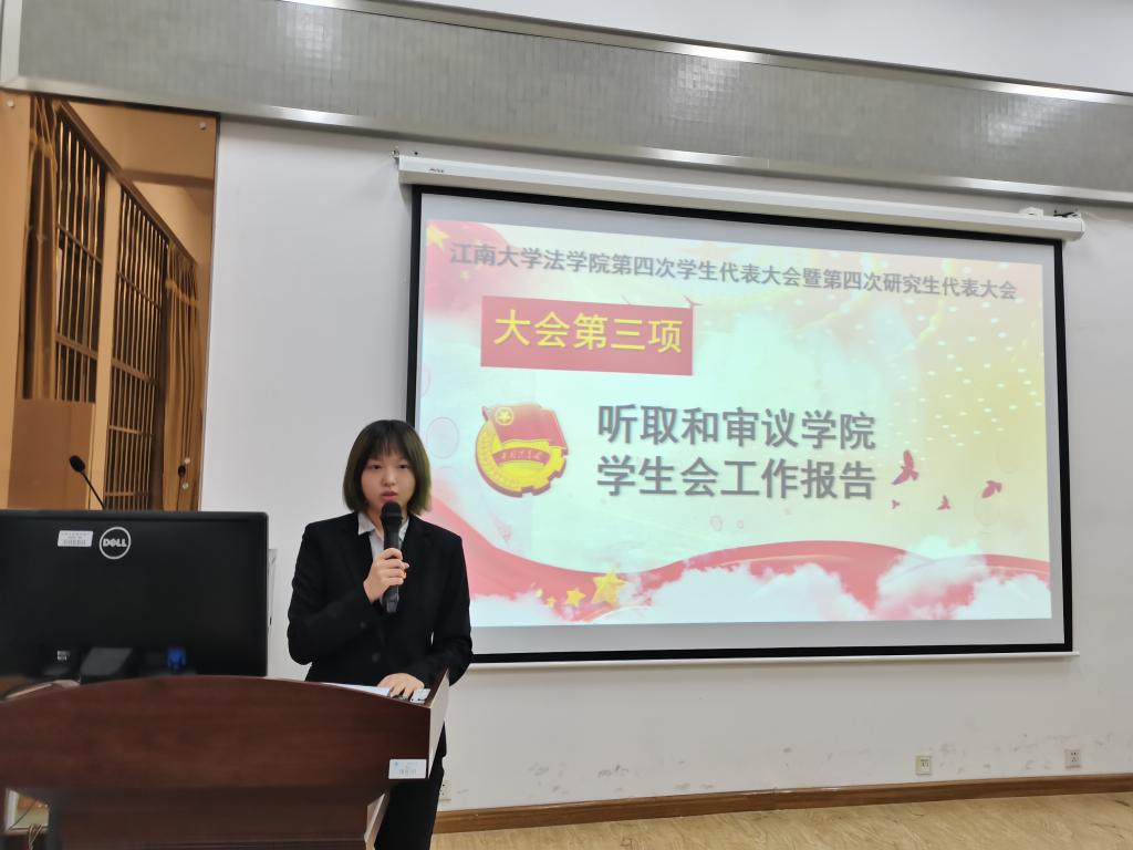 接着yl7703永利官网学生会执行主席张诗雨和研究生会执行主席王文平分别向大会作了题为《加强思想政治引领,不忘初心砥砺前行》和《立足新时代,奋斗新征程》的工作报告。他们分别回顾总结了过去一年院学生会、研究生会的工作,并提出未来一年院学生会、研究生会的工作方向和目标,希望大家能够锐意进取、与时俱进,团结带领法院学子在yl7703永利官网建设中贡献更多的青春智慧与青春力量。