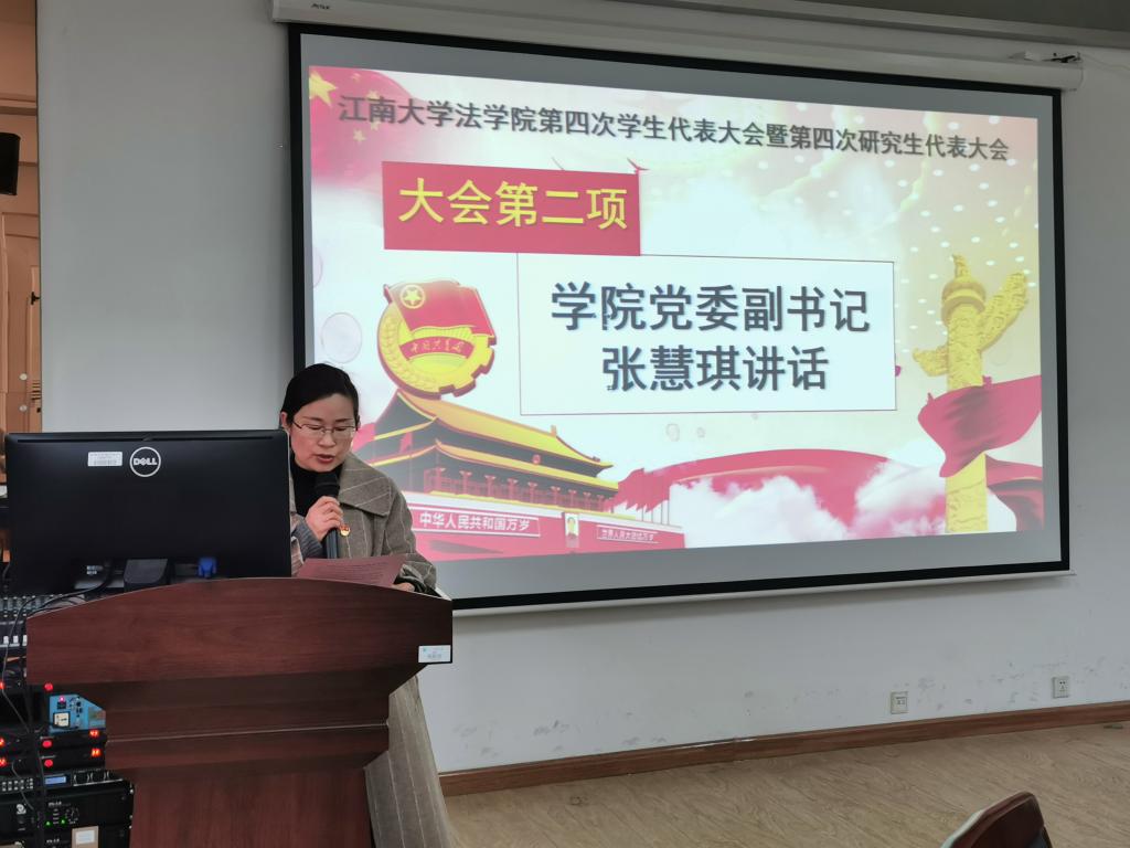 张慧琪代表学院党委对大会的召开表示热烈祝贺。她对一年来yl7703永利官网各级学生组织取得的优异成绩表达了赞许与鼓励,同时勉励法院青年学子们要勤学善思、目光深远、创新进取、奋勇争先,在对国家的高度责任感中完成自我价值的实现。