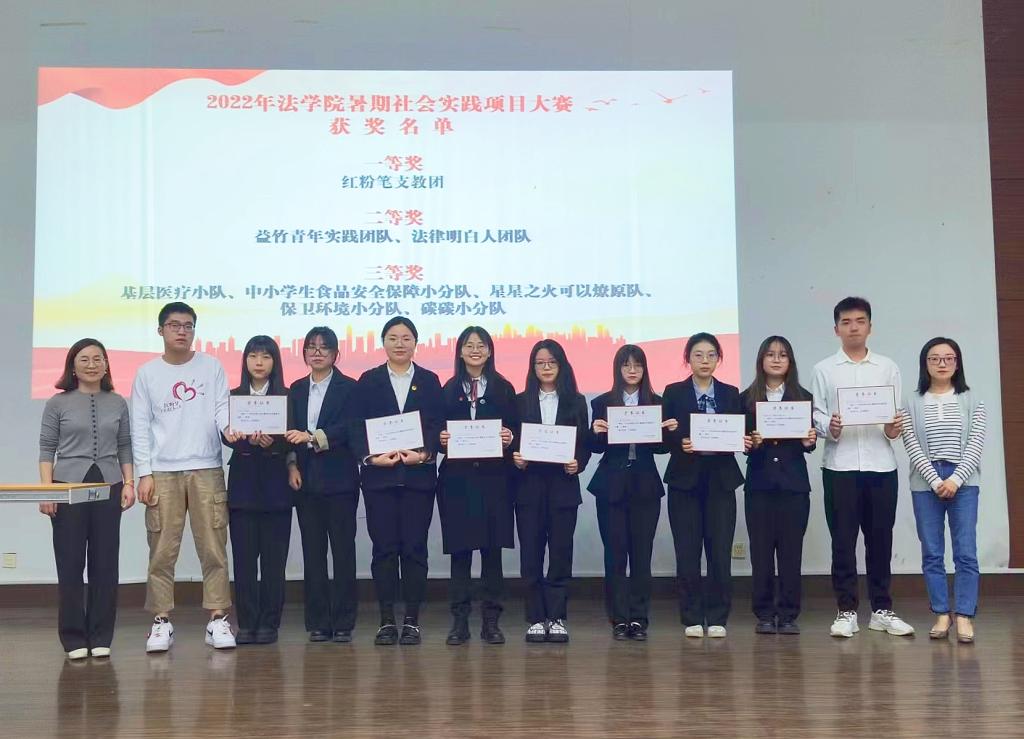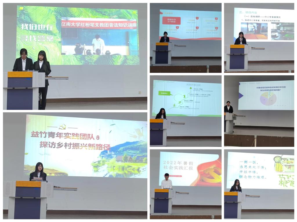 接下来,进行2022年暑期社会实践项目大赛颁奖暨成果展示环节。yl7703永利官网红粉笔支教团坚守“红心筑梦,粉笔传爱”的理念,将青春志愿的火种播撒到大山深处,为乡村振兴贡献蓬勃力量,荣获一等奖;益竹青年实践团队聚焦乡村干部建设、大学生返乡创业机制等热点话题,助力形成科学的大学生返乡支持体系;“法律明白人”团队,聚焦农民环境权益问题,调研村民委员会作为环境公益诉讼的主体的普遍性问题,两支团队荣获二等奖;基层医疗小队、中小学生食品安全保障小分队、星星之火可以燎原队、保卫环境小分队、碳碳小分队荣获三等奖。8支优秀社会实践团队分享了宝贵经验,展现了yl7703永利官网学子聚焦基层、关注民生的独特角度,给2022级新生树立了勇担社会责任、展现青年风采的榜样。