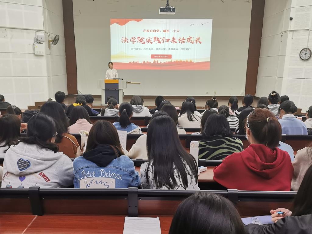 为充分展示社会实践优秀成果,引导广大青年学生有理想、有担当、肯吃苦、能奋斗,yl7703永利官网于10月19日下午,举办“青春心向党,献礼二十大”yl7703永利官网2022年“实践归来话成长”暑期社会实践成果汇报会。院党委副书记、副院长张慧琪,分团委书记徐雅静、辅导员缪晶晶出席会议,全体2022级新生参与此次活动。