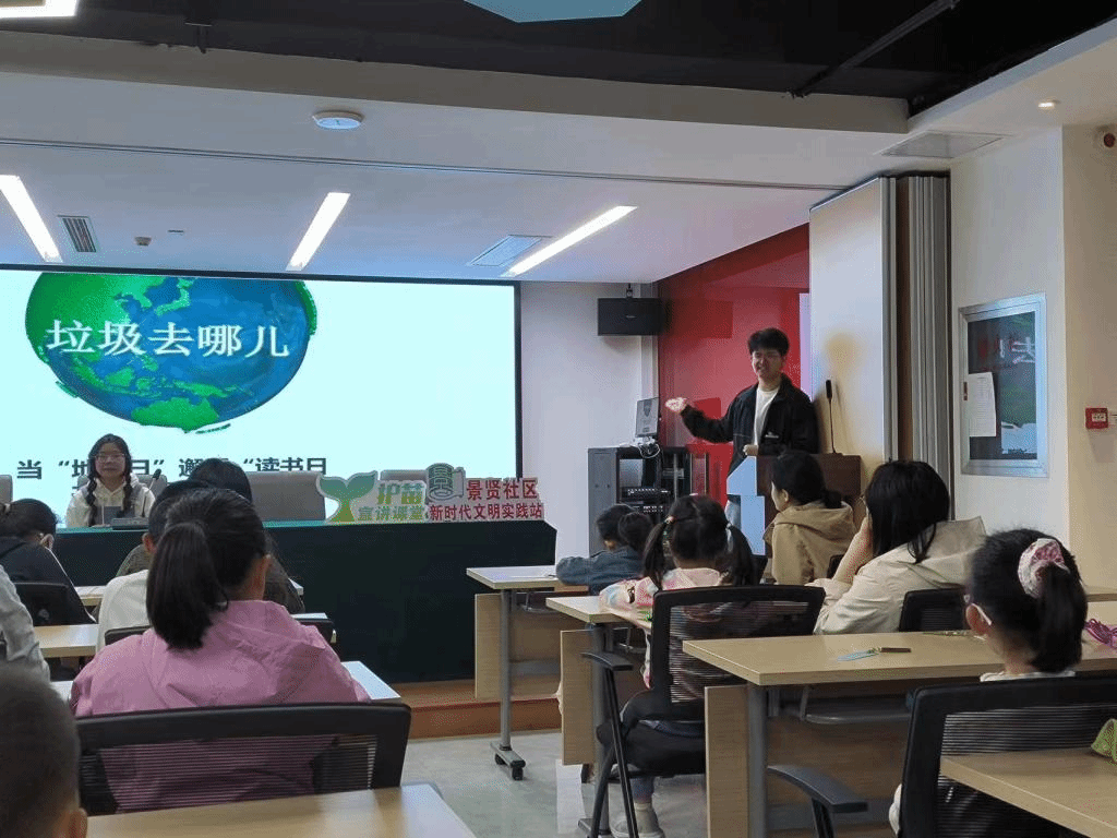 为加强世界地球日与世界读书日宣传推广,倡导绿色生活,提升青少年保护地球和热爱阅读的意识,激发对环保理念和阅读学习的兴趣,4月22日下午,yl7703永利官网“益治青春”基层治理实践团来到华庄街道景贤社区开展了以“地球日邂逅读书日,共享绿色书香”为主题科普课堂活动。学生王泓勋、刘冉、陈成雷、何雨以及社区30余名小朋友和家长参与了本次活动。