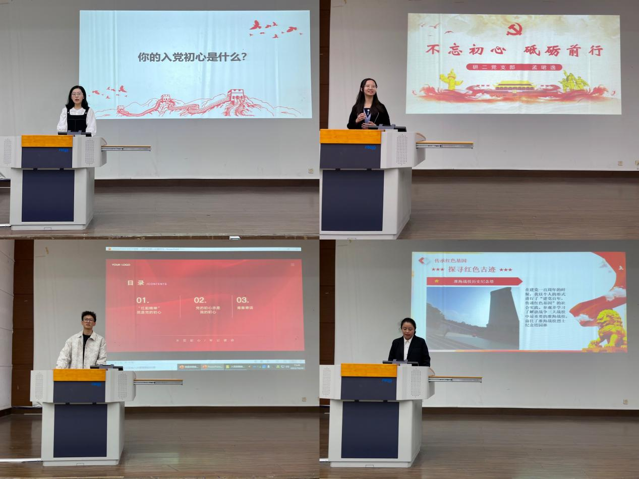 孙隽涵从雷锋的事迹和精神阐述了个人和集体的关系,并结合自己参加学院普法宣传工作的实践经历,认为一名学生党员应勇于挑战,迎难而上,在实践中磨砺自我。孟珺逸通过梳理党的百年历史,认为党的初心是“为中国人民谋幸福,为中华民族谋复兴”,而自己的初心是“见贤思齐、砥砺前行”,并结合自己考研、科研、学生工作的经历鼓励新生们要努力拼搏,追求更好的自己。周一鸣分享了服役于解放军94826部队的经历,在部队中,他深受优秀党员先锋模范精神的影响,明确了自己的初心和使命,坚定了要成为一名共产党员的决心。吴欣禹结合自己在江苏省连云港市人民检察院的实习经历,深刻认识到作为一名法律人要“以坚持真理的态度对待真理,坚守理想的态度呵护理想”,在实际行动中践行社会主义法治精神内涵。周静茹认为青年党员应发挥先锋模范作用,她关注到老年人在就医时不会使用健康码等现实民生问题,主动担当,深入县医院、社区诊所,在一次次志愿活动中积极践行为人民服务的誓言。俞沁元以“传承红色基因”为切入点,认为青年党员要“学业在勤,慎思笃行,众行致远,疑而屡破”。郭雨东结合自己的党史学习经历,深入解读党和人民的关系,认为共产党员要时刻把人民放在心中,为人民服务,从小事做起,从身边做起。刘静提出“争做什么样的时代新人?”,这一问题引发同学们的思考,她结合钟南山、黄文秀等优秀共产党员的事迹,并回顾了自己的入党历程,认为同学们要争做心怀“国之大者”的时代新人。