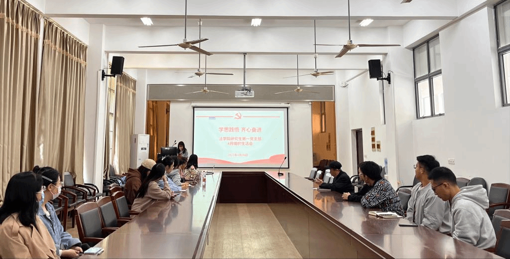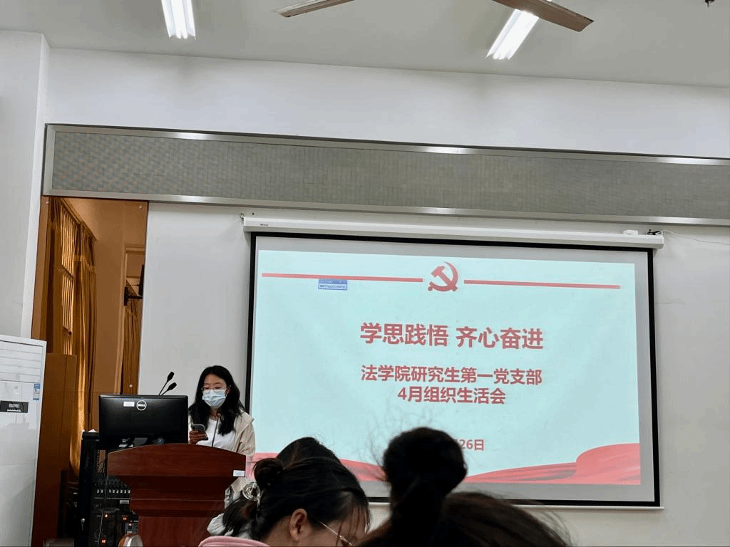 会议伊始,由学生代表赵燕、张渊琛、范馨允、孙巧玉、詹志杰同志依次分享学习心得,他们纷纷表示,作为一名新时代青年党员和法学专业研究生,务必时刻领悟并牢记习近平总书记讲话精神,务必将自己所学的专业知识与国家和社会发展的需要结合起来,加强对新兴领域立法问题的关注与学习,加强实践探索,探究如何用法律来更好地推动和保障新兴领域的发展,并不断提升自己的专业素养和工作能力,将奋斗的汗水挥洒在中华民族伟大复兴的征程之中。