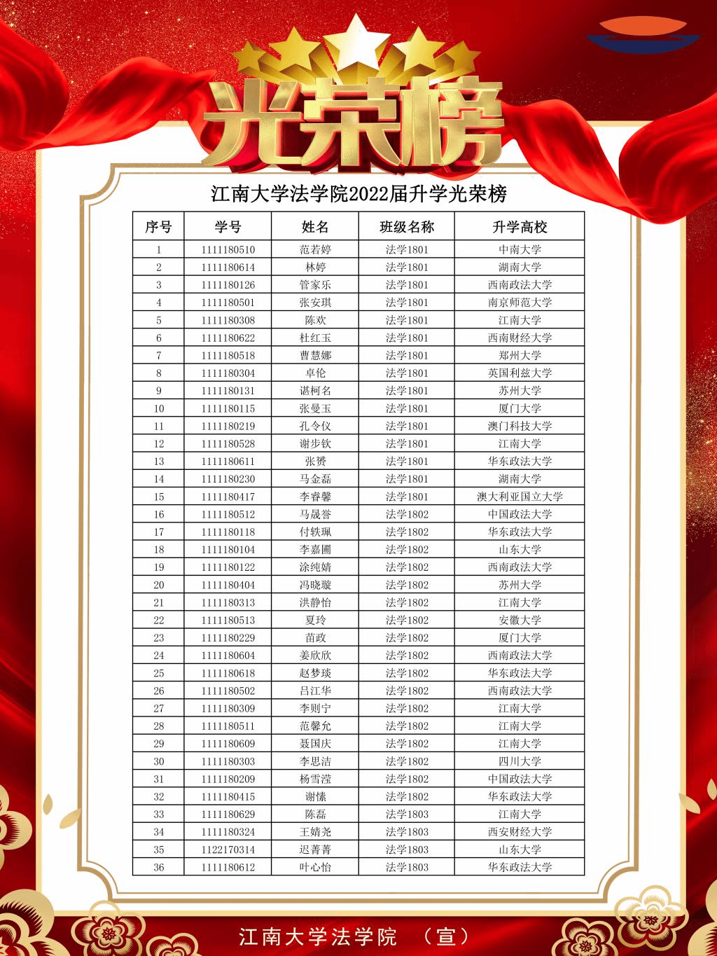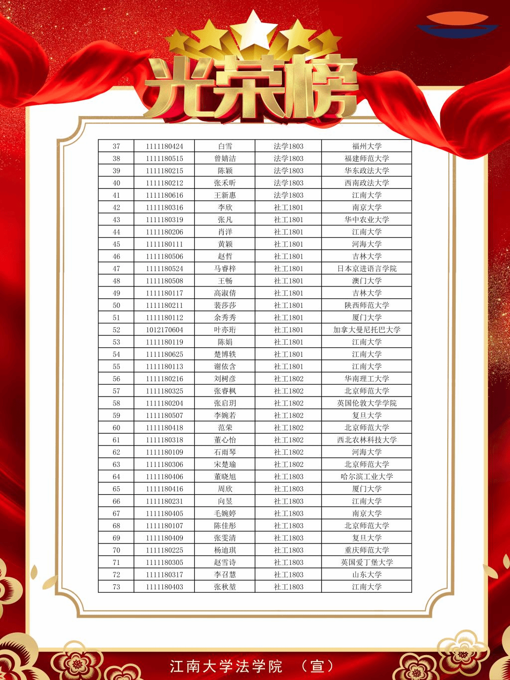 yl7703永利官网2022届本科毕业生考研取得可喜成绩,共73名毕业生升学至中国政法大学、复旦大学、南京大学、厦门大学、英国利兹大学、英国爱丁堡大学、澳大利亚国立大学等国内外知名高校。
