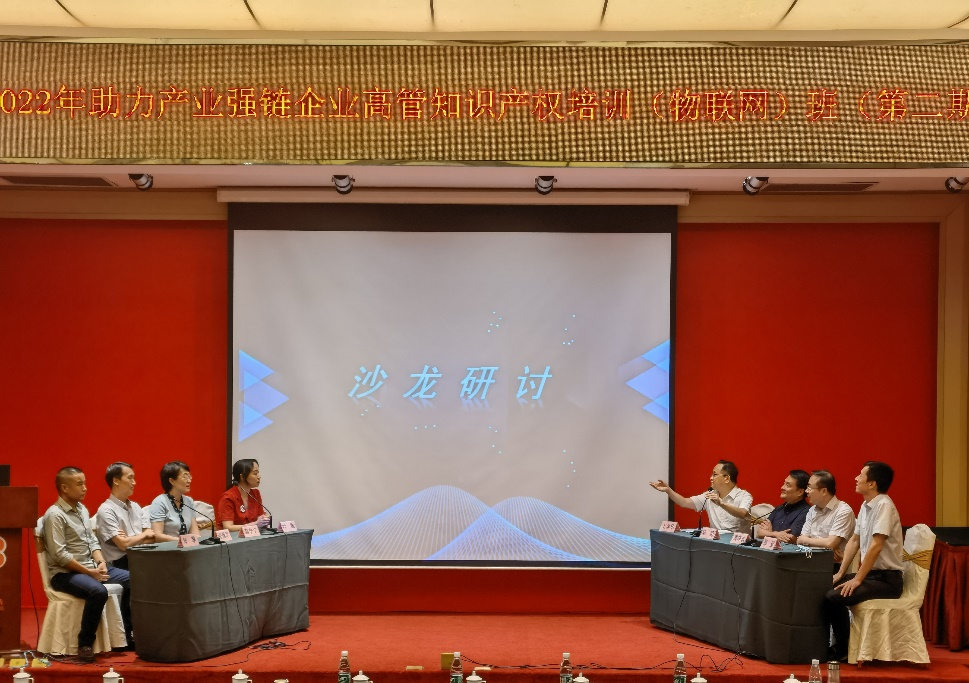 2022年9月8日,由江苏省知识产权局主办,无锡市知识产权局、yl7703永利官网承办的“江苏省2022年助力产业强链企业高管知识产权培训(物联网)班(第二期)”在无锡山明水秀大饭店开班。yl7703永利官网产业研究院院长刘龙,无锡市市场监管局党组成员、无锡市知识产权局副局长(专职)王英,无锡市市场监督管理局(知识产权局)知识产权保护处处长吴伟新共同出席了本次培训的开班仪式,来自全市物联网企业的90余名高管参加了培训。