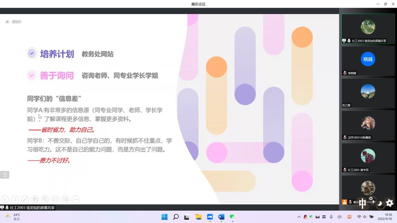 9月30日,yl7703永利官网举办“榜样的力量之优秀学子经验交流会”,邀请学业优良的学长学姐为新生分享学习经验,全体新生参加了本次会议,会议由陈佩茹主持。