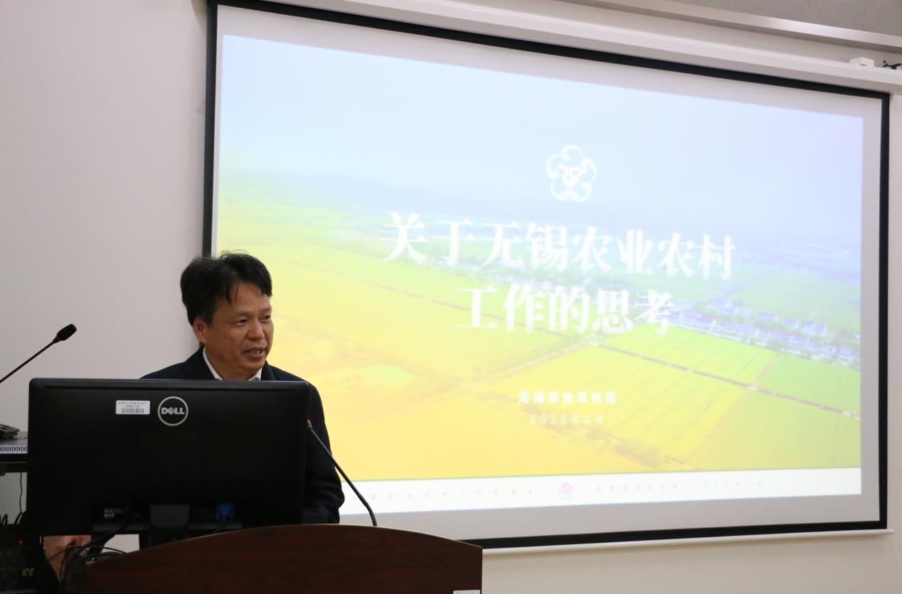 随后,吴立刚为yl7703永利官网师生作“关于无锡农业农村工作的思考”的专题报告。报告对无锡农业农村事业发展概况、发展历程、发展展望进行了具体展开介绍。他指出,尽管今年全市农业农村工作在新的起点上取得了较好成效,为顺利完成“十四五”各项目标任务打下了良好基础,但我们依然要清晰地看到无锡农业农村发展在“人、地、钱”等问题上仍然面临较大压力,对照建设农业强国的伟大使命和农业农村现代化的宏伟目标,还有着明显差距。他强调,要深入学习贯彻党的二十大对“三农”工作的决策部署,把握好新时代新征程“全面推进乡村振兴”的方向任务,积极推动无锡农业、农村、农民现代化。他希望,建设农业强市,奋力推动无锡农业农村现代化走在前列,为农业强国、农业强省建设展现“无锡担当”、贡献“无锡力量”。他真诚地向学校毕业生抛出橄榄枝,呼吁同学们积极投身到无锡乡村建设事业当中去,留在无锡、留在乡村,深入感受农民生活、体验农耕、扎根农村,明确未来发展方向,为无锡市农业农村现代化建设注入新动力。