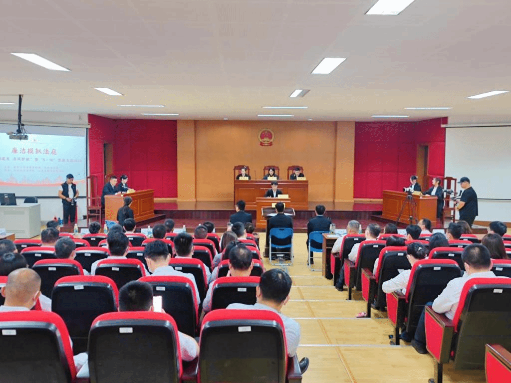 在模拟法庭法治宣传教育中,案件选取并改编“薛秀丽贪污罪、受贿罪”(案号:2020川0180刑初49号),yl7703永利官网研究生分别饰演审判人员、公诉方、辩护人、被告人、证人等角色,庭审环节包括开庭准备阶段、法庭调查阶段、法庭辩论阶段、休庭期间、合议庭评议阶段以及宣判阶段。整个庭审过程流畅,程序设计规范,审判人员威严,控辩双方发言精彩,被告人真诚悔罪,展示出了庭审活动的威严与庄重。模拟法庭结束后,虞仕俊作专业点评,从审判人员的裁判结果、公诉人对被告人的发问、辩护人的辩护思路三个层面展开具体分析;最后,邵建东作点评讲话,强调要以坚定的理想信念筑牢廉洁自律根基,加强党性修养,提升法治思维。