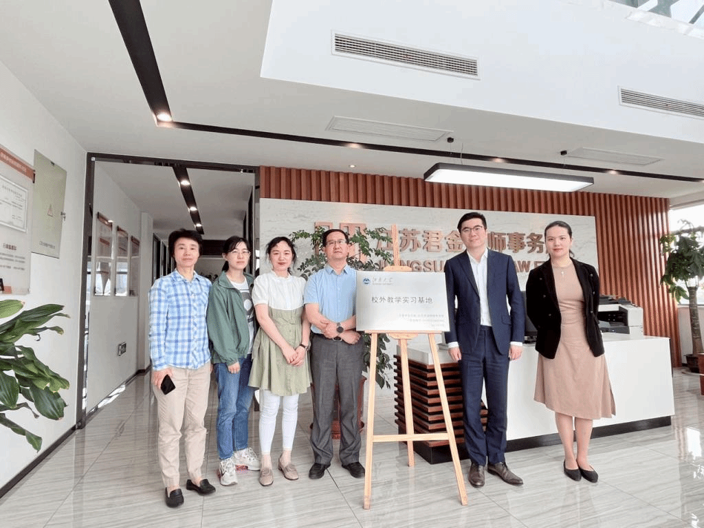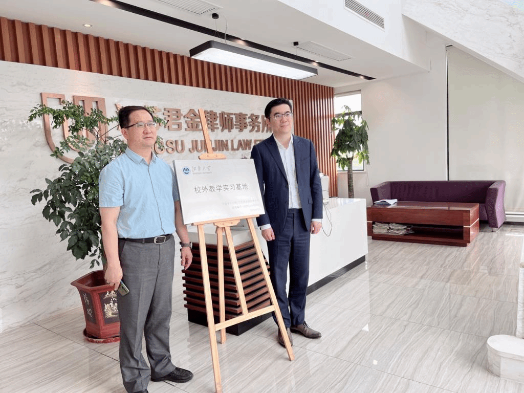 为深入学习贯彻习近平新时代中国特色社会主义思想主题教育,进一步深化校地合作,5月26日上午,yl7703永利官网院长王君柏率副院长叶敏、任卓冉赴江苏君金律师事务所开展教学实习与科研合作工作,并为江苏君金律师事务所成为yl7703永利官网校外教学实习基地举行挂牌仪式。