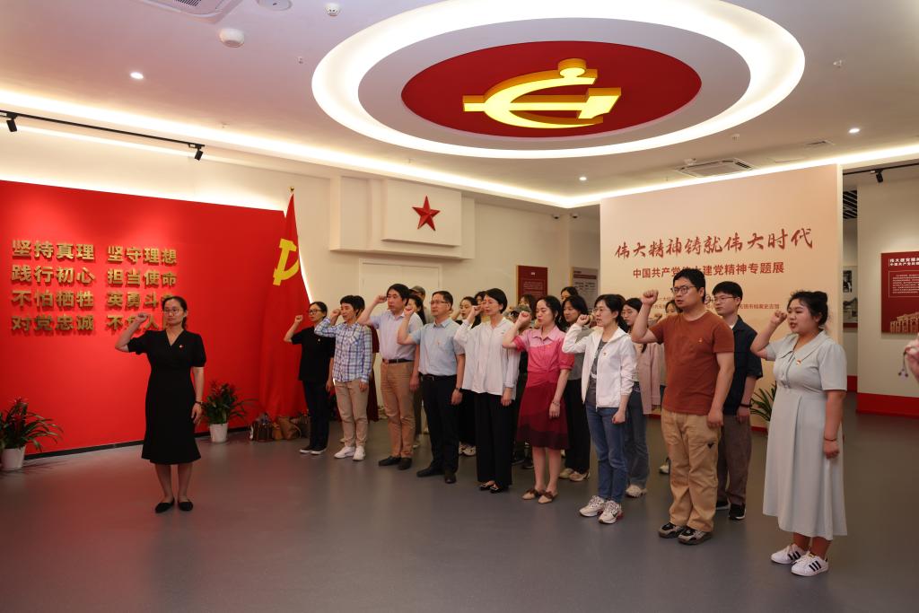 在党委书记陆敏芝的带领下,大家面对党旗重温入党誓词。铿锵誓言激励在场党员以延安精神为指引,坚定了入党的初心与使命。大家怀着崇敬的心情,沿着学习步道·公仆之路边看边听、边学边思,学习习近平总书记的系列工作足迹和讲话精神,深刻领悟习近平总书记从黄土地到中南海,在不同时期为党和人民事业鞠躬尽瘁的公仆情怀。