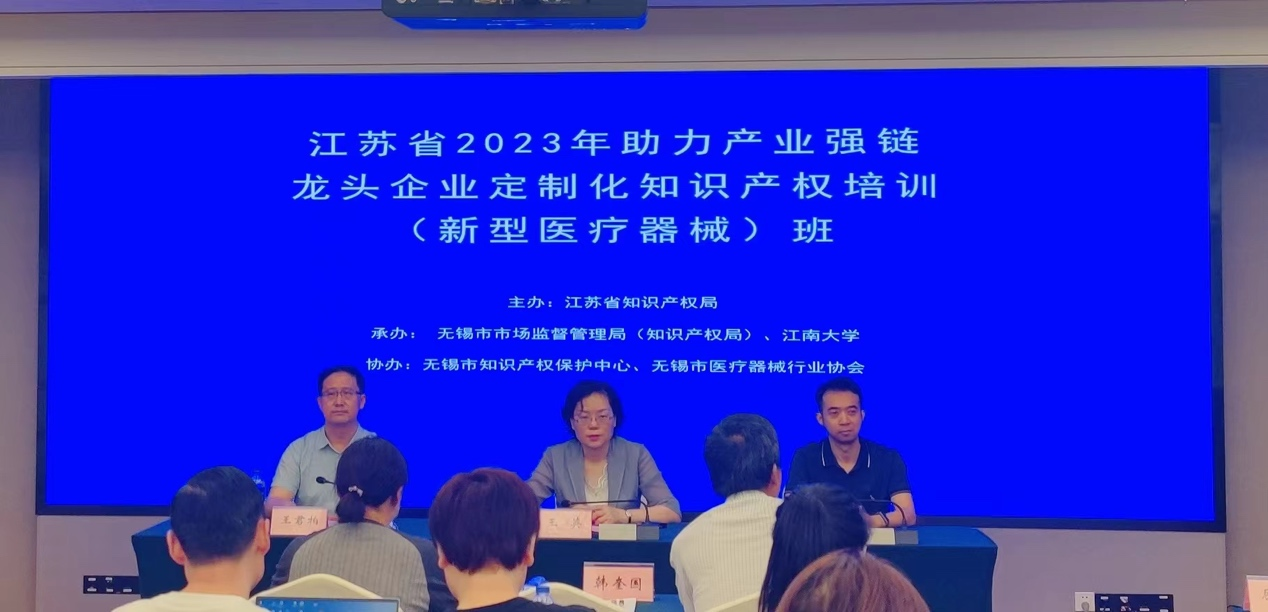 9月18日至19日,由江苏省知识产权局主办,无锡市知识产权局、yl7703永利官网承办的“江苏省2023年助力产业强链龙头企业定制化知识产权培训班(新型医疗器械)”在无锡长广溪宾馆正式开班。来自全市新型医疗器械龙头企业的50余名学员参加了培训。
