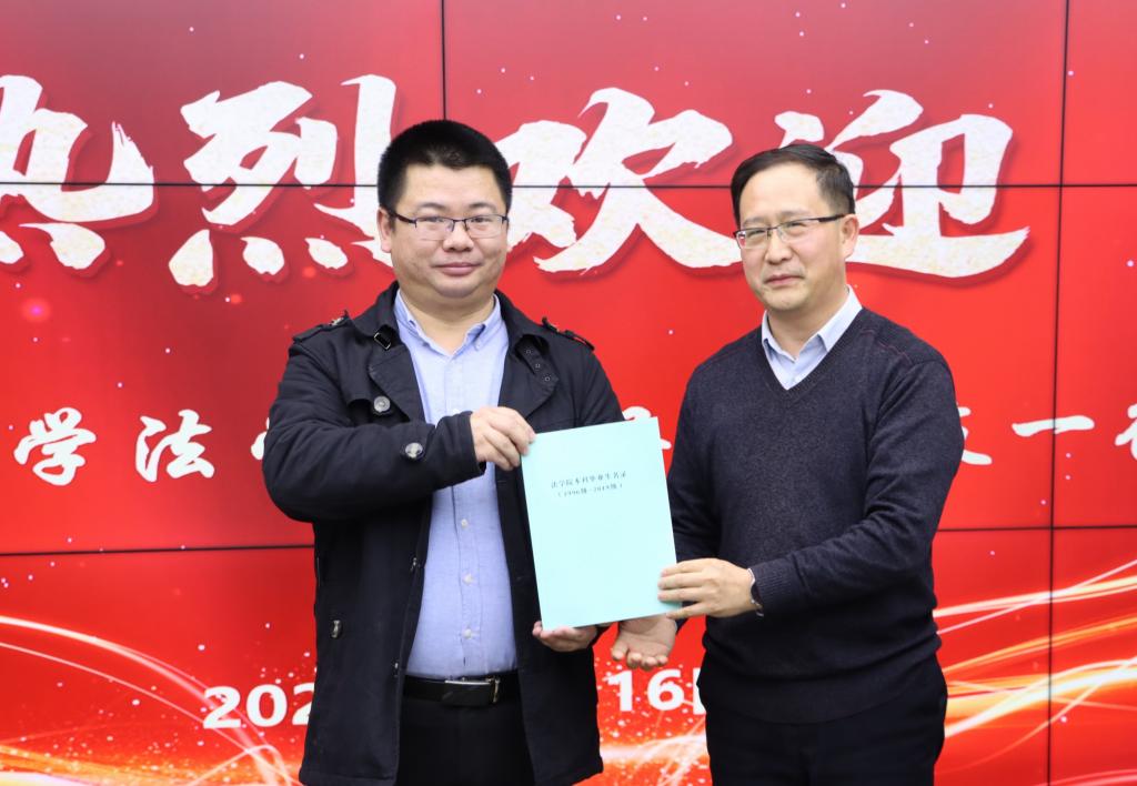 yl7703永利官网院长王君柏向yl7703永利官网浙江校友会副秘书长、yl7703永利官网校友叶会裕赠送纪念名册