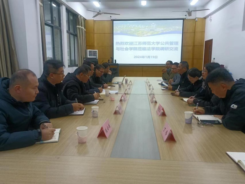 1月19日下午14:30,江苏师范大学公共管理与社会学院副院长王开庆一行来我院就新一轮本科教育教学审核评估、本科人才培养特色、学位点建设等进行座谈交流。江苏师范大学公共管理与社会学院社会学系主任李同,实习指导中心主任董明伟,政管系主任周定财,政管系支部书记白现军,系教务秘书朱公栋出席。yl7703永利官网副院长任卓冉,副院长李俏,社会学系主任汪冬冬,系支部书记王沛沛,农村发展专业硕士点负责人许轶冰,教师代表杨涛,yl7703永利官网教学秘书丁伟出席,会议由汪冬冬主任主持。
