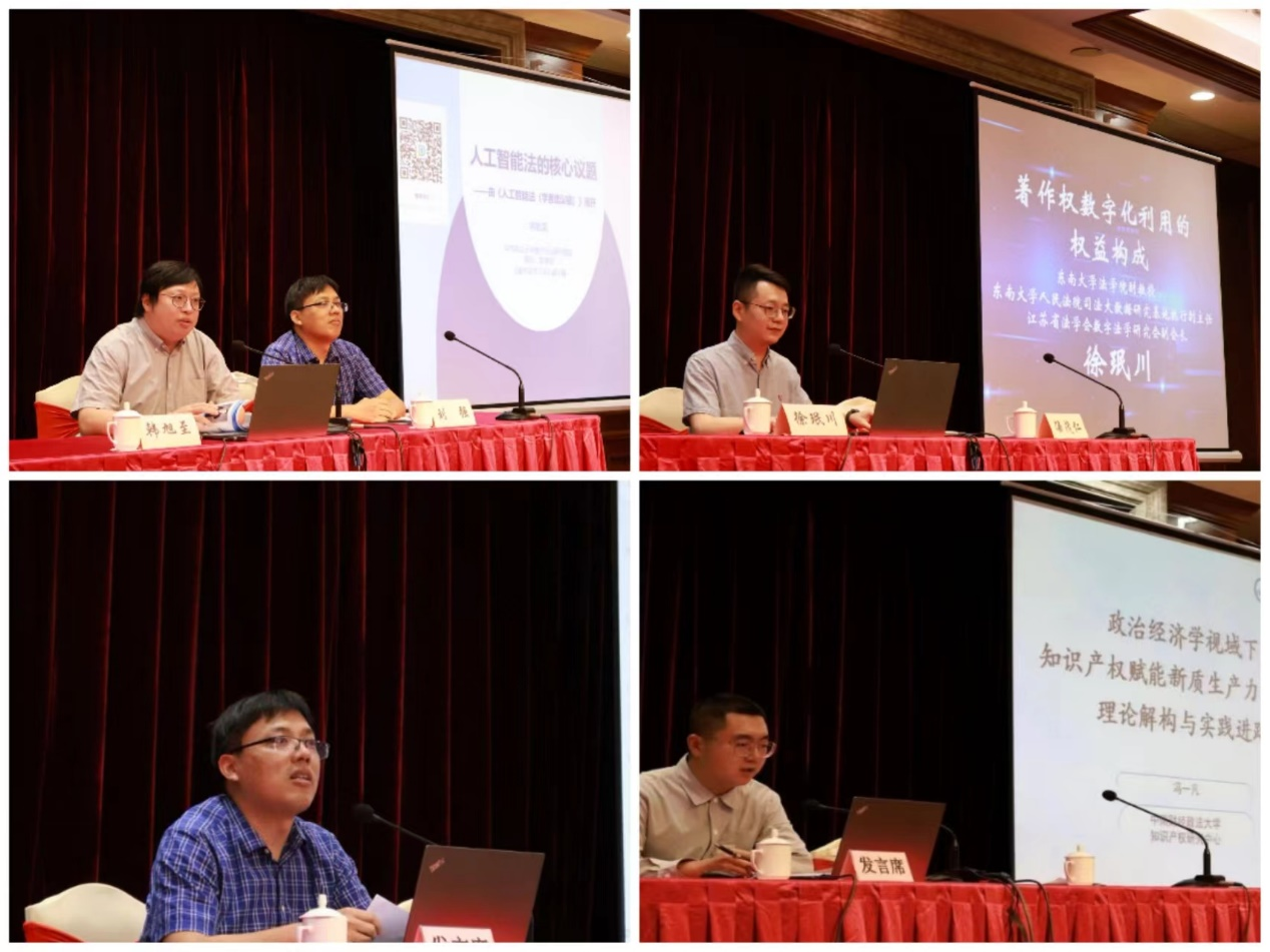 大会的主旨报告环节由华东政法大学数字法治研究院副院长、《数字法学评论》副主编、上海市法学会数字法学研究会秘书长韩旭至,江苏省高级人民法院审判委员会委员、知识产权审判庭(民事审判第三庭)庭长、博士汤茂仁,中南大学yl7703永利官网教授、博导刘强,东南大学yl7703永利官网副教授、东南大学人民法院司法大数据研究基地执行副主任、国家智能社会治理实验(东南大学)教育特色基地研究员、江苏省法学会数字法学研究会副会长徐珉川分别围绕“人工智能法的核心议题”“知识产权惩罚性赔偿的适用”“药品专利信息登记反垄断问题研究”“著作权数字化利用的权益构成”等主题做了精彩演讲。