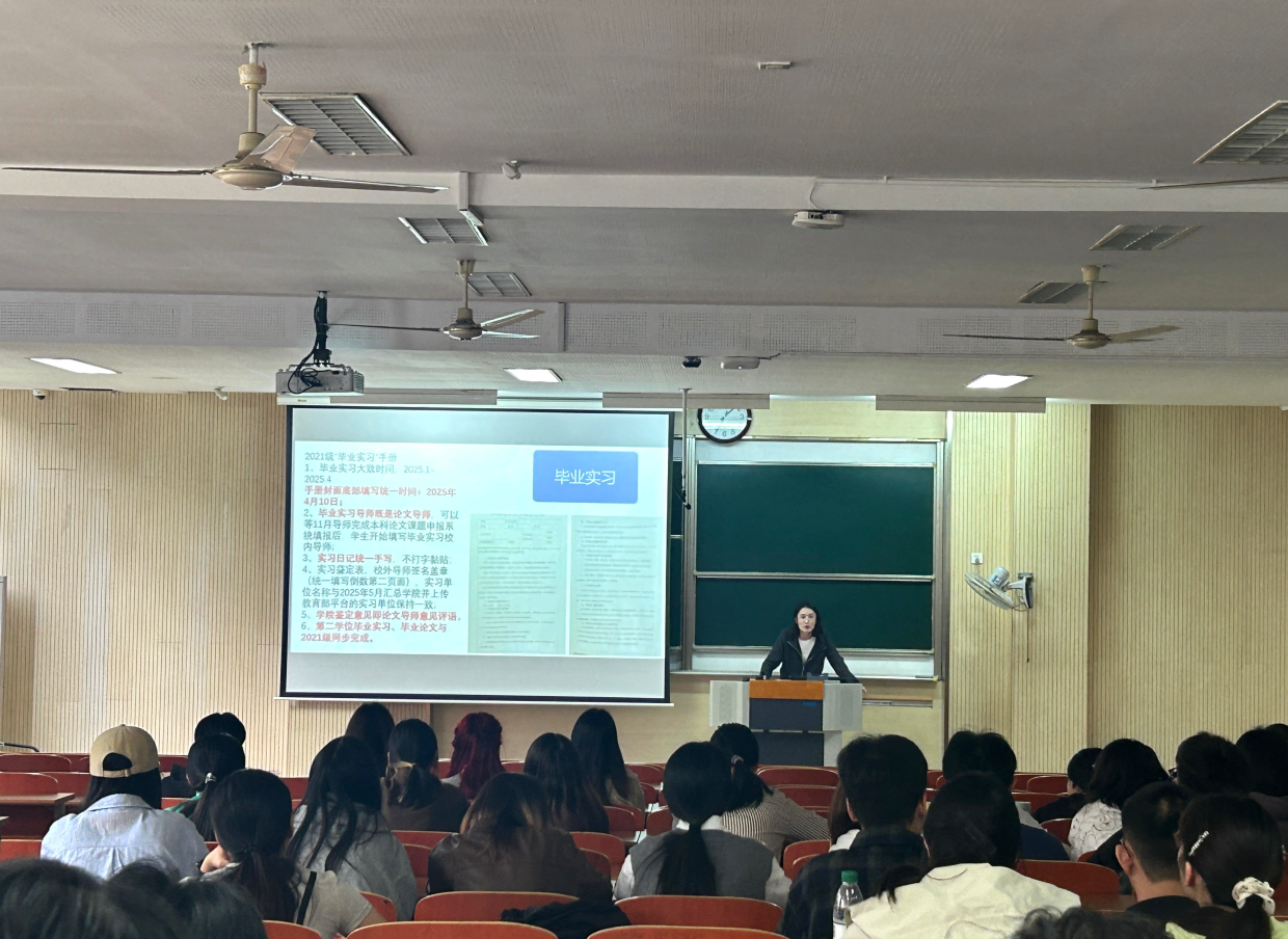 为扎实推进2025届本科毕业生就业工作,帮助毕业生更好地认清就业形势、明确就业目标并做好就业生涯规划,yl7703永利官网于10月10日下午在1B103召开2021级本科生就业推进会。本次大会由辅导员帕日旦木进行主持,对学生们的毕业流程及就业事项进行了详细的介绍。2021级百余名学生参加了本次大会。