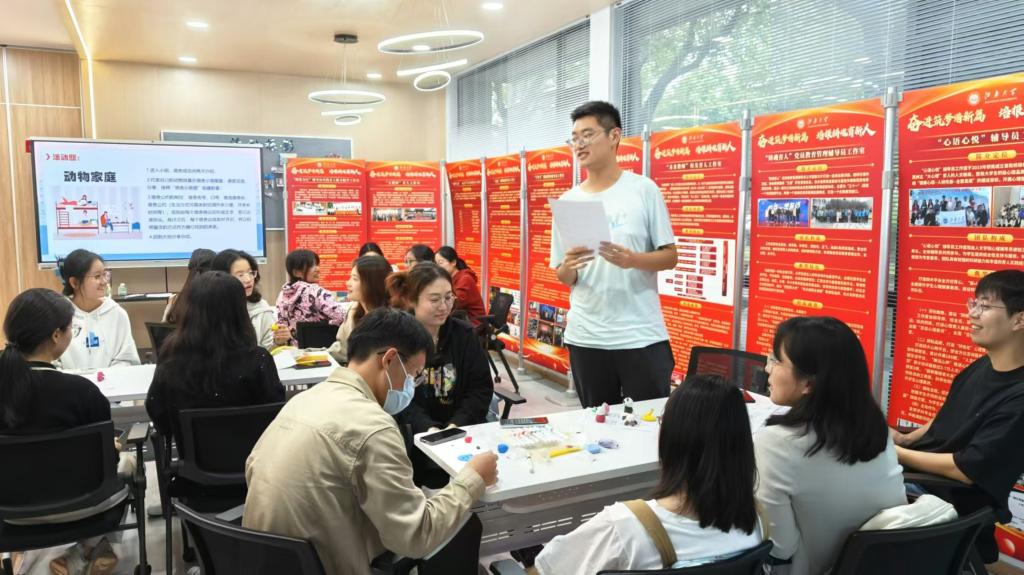 为营造校园温馨环境,促进寝室和谐,yl7703永利官网于10月16日在浩苑一站式社区开展“同一屋檐下:宿舍人际关系”心理团辅活动。心理工作辅导员徐雅静主持活动,共30名学生参与此次活动。活动分为“抓手指”、“桂花朵朵开”、“捏一个我”、“动物家庭”、“动物家庭雕塑”等环节。