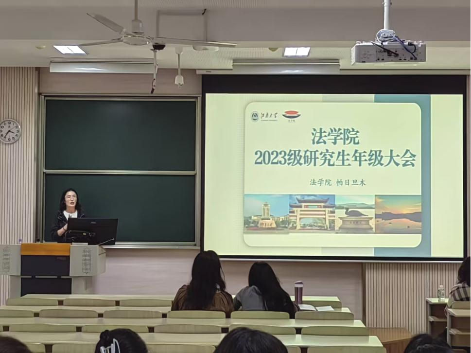 胡博强调学生网络言论与安全、违纪行为与处分等相关内容,告诫同学们培养规则意识,维护社会与校园网络空间秩序和安全。帕日旦木围绕研究生关心的奖助学金、综合测评、学科竞赛、党员发展、安全稳定、违纪处罚、科研等7个板块进行详细解读。她根据yl7703永利官网研究生国家奖学金新修订细则、研究生综测新修订细则等文件,着重介绍奖助学金的参评对象、奖励标准、比例以及评定发放要求,并对研究生综测情况,包括专业素质、实践素质和基本素质测评三个部分进行了详细说明。此外,她介绍党员发展流程,鼓励同学们扎实学业基础,提升政治觉悟,为成为一名合格的学生党员随时做好准备。最后,帕日旦木强调网络言论与安全、违纪行为与处分等相关内容,对学生违反校纪校规的行为与处罚方式进行了详细说明,提醒学生要注意校园消防安全、财产安全、防诈骗等情况,并杜绝出现违反校纪校规现象。