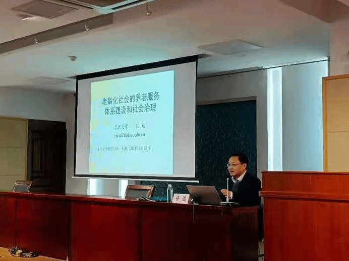 2021年4月26日下午,复旦大学社会发展与公共政策学院的任远教授应邀作客“德法力行”讲坛,在文浩馆205报告厅,为我院师生做了一场题为“老龄化社会的养老服务体系建设和社会治理”的专题讲座。讲座由yl7703永利官网副院长李俏主持,社会学系教师赵向红、王金元、彭青云,太湖学院商学院副院长陈倩,以及社会工作专业2021级本科生和农村发展专业2021级硕士研究生共150人听取了报告。
