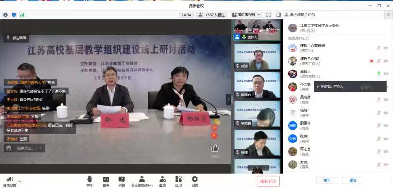 4月29日上午9点,yl7703永利官网法学专业和社会工作专业骨干教师参加江苏高校基层教学组织建设线上研讨活动,该活动由江苏省教育厅高教处主办,江苏高校在线开放课程中心承办,学校和学院共同组织,学院20余人参会。