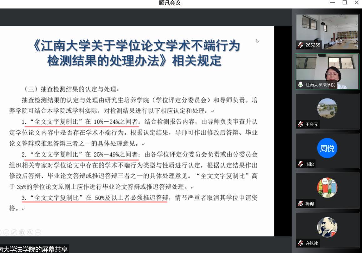 随后,副院长李俏教授通报本学期学院研究生工作的基本情况,学习与研讨yl7703永利官网研究生培养和学位管理的相关规定,深度剖析本学期学院研究生论文在查重、盲审等方面出现的问题,提醒相关导师切实履行导师职责。学院对违反师德、行为失范的导师,实行一票否决,并依法依规坚决给予相应处理。