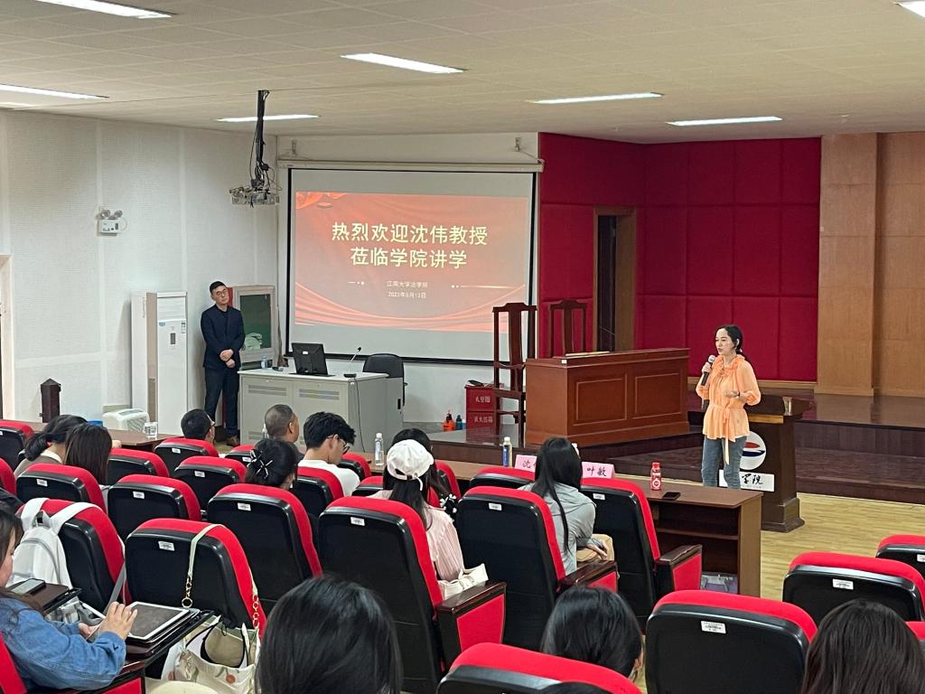 5月13日上午,上海交通大学特聘教授、博士生导师沈伟应邀来访yl7703永利官网,在yl7703永利官网模拟法庭教室为我院师生做了一场题为“中美金融摩擦的国际法分析”的专题讲座。法律系教师梅锦、钱玉文、杨文丽、徐攀亚,以及法学、法律专业研究生共100余人参加了本次活动。讲座由yl7703永利官网副院长叶敏主持。