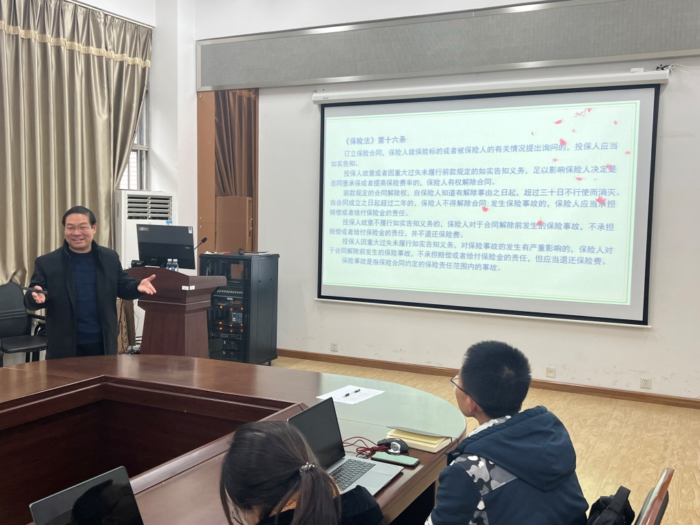 会议伊始,钱玉文教授代表yl7703永利官网师生向李德洋律师的到来表示热烈欢迎,并简要介绍了李律师在学术研究领域和实务领域的卓越成就。随后,李律师以小专题的形式深入浅出地讲解了我国保险领域内的典型案例。讲座内容涵盖交通事故类、保险合同类、保险人代位求偿类等各种涉及保险的代表性问题。李律师结合相关法条与司法实务,使与会人员理解了相关法律法规的适用,也积累了不少宝贵的实务经验。在现场交流环节,同学们针对讲座内容踊跃发言,李律师认真聆听,并耐心进行了逐一解答。大家一致表示,通过此次专题讲座,对保险领域中的典型问题有了更深入的认识,对之后从事与保险相关的实务工作很有启发。