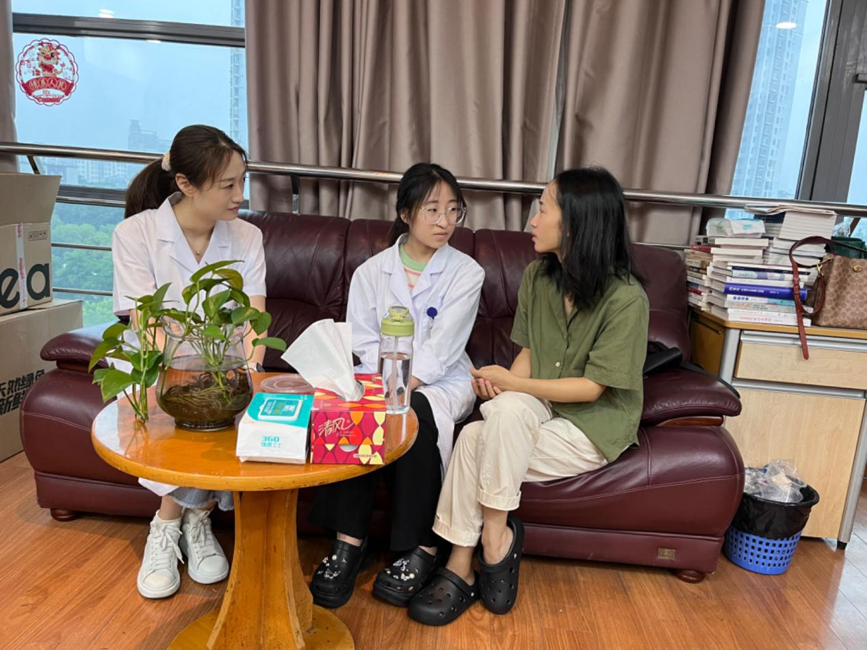 祝璞璞老师在人民医院与游亚欣同学及医院团委干事进行座谈